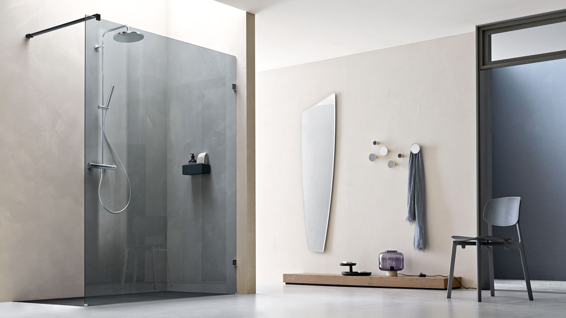 A completare la progettazione dell’apertura c’è infine la scelta della presa (maniglia o pomolo): oltre che esteticamente piacevole, dev’essere ergonomica e garantire un’impugnatura agevole, anche con le mani bagnate. Questa scelta è ancora più importante nei bagni accessibili, tenendo conto delle esigenze di bambini o persone con ridotte funzionalità motorie o di disabilità sensoriali.