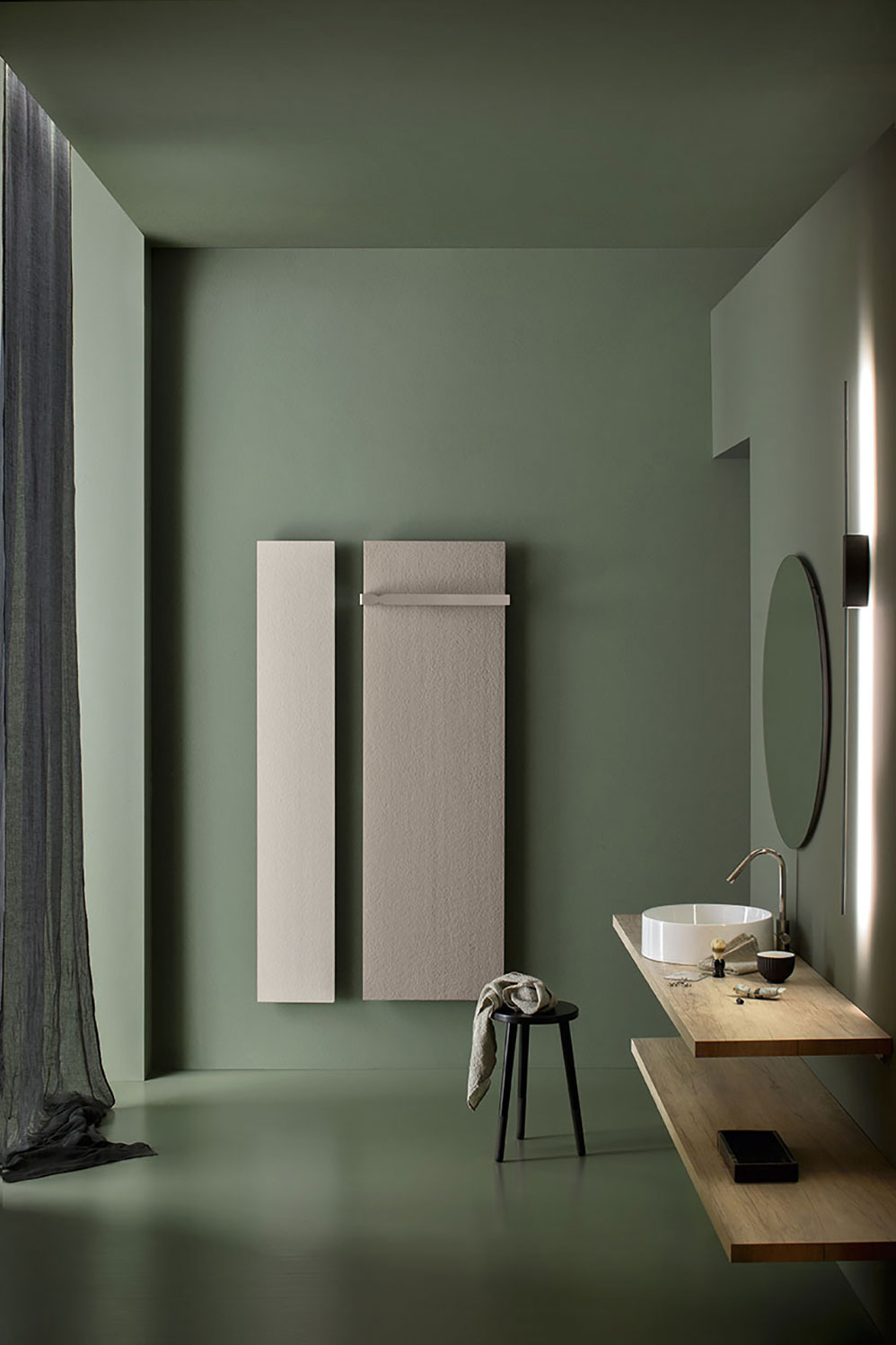Superfici coordinate consentono l’accostamento tra pareti e piatti doccia, lavabi e top dei mobili da bagno, così come i profili metallici dei box doccia possono essere abbinati alle maniglie o alle finiture dei mobili stessi, e – perché no – anche al termoarredo.